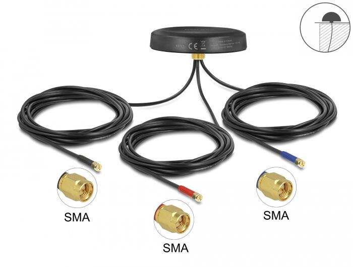 DELOCK Többszárú LTE UMTS GSM GNSS antenna 3 db. SMA apa mindenirányú tető csatlakozással, kültéri f (12717) (12717)