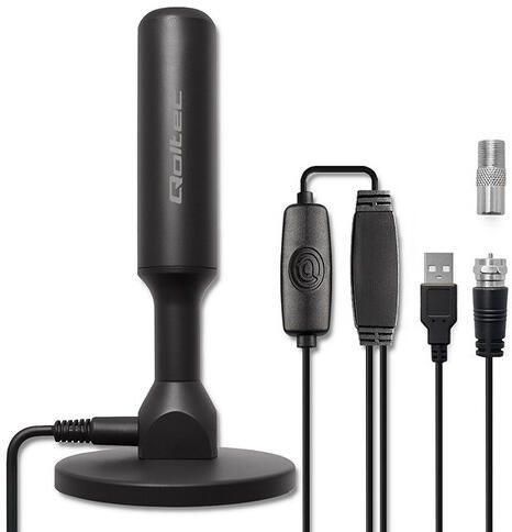 Qoltec beltéri DVB-T2 TV antenna jelerősítővel és mágneses talppal | 4K | 28dBi | 5m (57052)